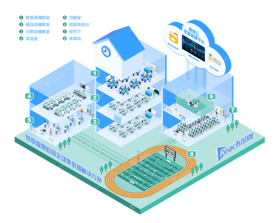 在智慧校園中,銳取的方案覆蓋了智慧錄播教室、精品錄播教室、云眼錄播教室、實(shí)驗(yàn)室、校園電視臺(tái)、功能室、校園體育、報(bào)告廳八大校園場(chǎng)景,結(jié)合一體化教育資源平臺(tái)進(jìn)行資源的記錄、傳播與分享,并以場(chǎng)景化、互動(dòng)式的形式改變教育生態(tài)系統(tǒng),打造師生時(shí)間、生生之間、校際之間的互動(dòng)生態(tài)圈,促進(jìn)優(yōu)質(zhì)數(shù)字教育資源的建設(shè)和應(yīng)用,滿(mǎn)足學(xué)習(xí)者、教學(xué)者和管理者的個(gè)性化需求,賦以教育“智慧”的能量。