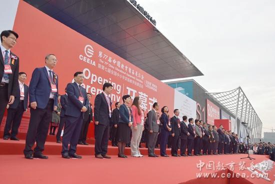 2019年10月12日上午,在《我和我的祖國》快閃活動深情飽滿的表演中,第77屆中國教育裝備展示會在中鐵·青島市世博城國際展覽中心盛大開幕。本屆展示會由中國教育裝備行業(yè)協(xié)會主辦,山東省教育廳、青島市人民政府共同承辦,各省、自治區(qū)、直轄市及計劃單列市教育裝備行業(yè)協(xié)會協(xié)辦。