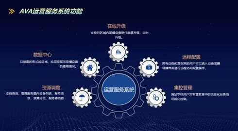 奧威亞運營服務系統以“區域直播、互動資源調控”為核心,能同步實現“錄播數據中心”、“錄播遠程運維”、“錄播集控中心”等作用,極大地提高區域錄播資源整合能力,最大限度地保持設備的常態化運行,為各區域的教學工作靈活開展,提供了更堅實的保障。