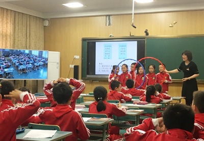 鎮海應行久外語實驗學校與九龍湖中心學校攜手推出了一堂“同步課堂”研討課。來自鎮海應行久外語實驗學校的俞虹娜老師帶著三(1)班的學生上了《重疊問題》一課,并通過同步課堂與九龍湖中心學校三(3)班的孩子們進行互動教學。課后,俞虹娜老師交流了教學設計的意圖和教學反思。鎮海區9所“互聯網+義務教育”結對幫扶工作學校分別總結了階段性工作舉措和成效,分析了存在的問題,并就進一步提高“同步課堂”、“網絡教研”等的實效性提出了意見與建議。