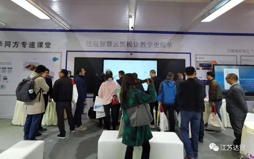 在達冠教育展位聚集了眾多來賓,大家紛紛上前體驗產品,多人同時書寫,一邊書寫一邊擦除,都可以輕松實現,智慧云黑板觸控模組具有自動感應識別功能,消除感應遲鈍狀態(tài),達到與手機同等靈敏度效果,即使黑板表面有大量積水仍可正常觸控。