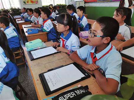 在智寫筆互動課堂上,孩子們拿起課桌上的平板電腦填寫題目答案,老師則能及時了解學生的答題情況;在線互動課堂上,一位音樂老師在一間空蕩蕩的教室里彈著鋼琴唱著歌,通過攝像頭和遠程連接,歌聲飄到了一所鄉(xiāng)村小學的教室里;在智慧課堂上,任課老師將性安全教育的內容,通過動畫的形式展示給學生,安坐家中的家長們則可以通過手機APP,實時查看上課畫面,聽老師的實時教學內容……