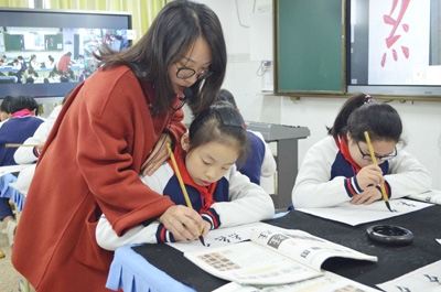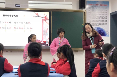 活動中,來自華舍小學的美術老師謝斐斐、音樂老師戴芳分別給本校及百里以外的平水上灶小學、玉安小學三地的孩子們上了書法課《絞絲旁》、音樂拓展課越劇《我家有個小九妹》。課堂上,三校學生利用平板進行搶答、回答問題、作品上傳;在越劇課堂中,學生們人手一把扇子、一個平板,戴芳老師利用現(xiàn)代教育技術,通過有趣的學、唱、演等游戲環(huán)節(jié),帶領四年級的小朋友們走進了小梅花越劇,讓越劇課變得更加生動活潑。