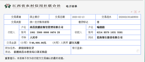 南昌致膳居餐飲管理有限公司捐款4萬(wàn)元