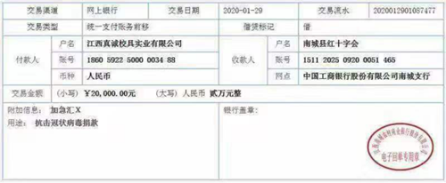 中飲智能技術(shù)股份有限公司捐贈(zèng)上饒廣豐區(qū)政府防疫隔離區(qū)物資10萬(wàn)元,江西省紅十字會(huì)5000元,南昌市創(chuàng)業(yè)促進(jìn)會(huì)500元。