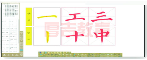 系統(tǒng)配備顏、柳、歐、趙體在內(nèi)的軟筆課堂摹寫課件,可按需求選用不同書體的筆畫、部首、結(jié)構(gòu)課件,進(jìn)行軟筆課堂摹寫練習(xí)。