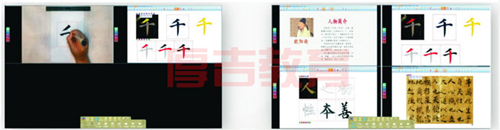 系統(tǒng)配備的全息碑帖單字,均具有四種模型講解方式和七種筆畫教學(xué)工具,可以提取任意單字的所需筆畫進(jìn)行詳細(xì)講解,再配合圖形庫(kù)中的助解工具教師可以從不同側(cè)重點(diǎn)靈活講解。