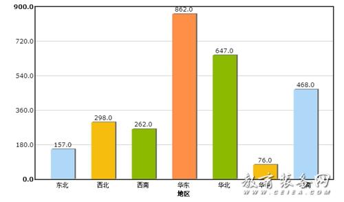 圖8 4月份教育裝備中標信息地區統計圖 (單位:條)
