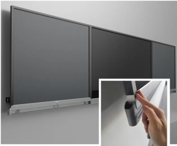 與傳統教學板相比,一體化光能黑板無邊框設計,無外露掛接件,安全美觀,方便電子設備的安裝、拆卸,簡單實用易維護。