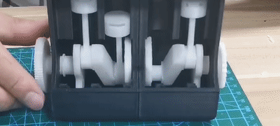 最后是拼裝完成的展示,由于轉軸零件在“大力出奇跡”的指導下導致?lián)p壞,因此只拼裝完成了氣缸部分的運動。在拼裝中,由于零件側面圓孔及圓柱接口塑造非常好,因此并沒有怎么費力便可以把零件拼合成了一起。氣缸運動很順滑,說明圓形通道和的運動臂圓帽的正圓度都非常高,表面光潔度好。不得不說,即使是我們?yōu)閿?shù)不多地經驗操作下,引擎模型還是大半部分得到了還原,還是挺讓人有成就感的。