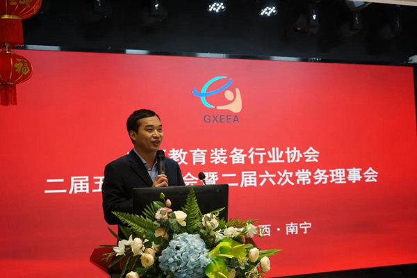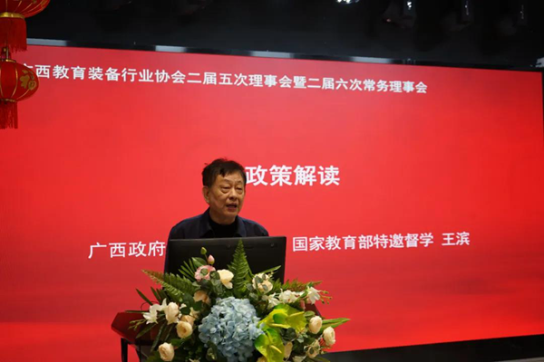 廣西政府督導室副主任,國家教育部特邀督學王濱在會議上作了教育政策的解讀。他在講話中指出,企業要了解教育改革發展形勢、研究教育改革發展的前沿信息、十四五規劃和2035年的遠景規劃目標,了解教育發展的規劃目標政策,了解國家在脫貧攻堅中教育取得的成就,了解建立教育強國,高質量的教育體系的重要性。更要了解教育裝備面臨發展的機遇和挑戰。面對百年未有的大變局,科技創新成為國際競爭力的大背景下,國家采取雙循環戰略,必定對教育加大投入,教育進入實現現代化階段,企業要做大做強,加強服務體系建設,做好售后服務工作。教育裝備更要向智能化,綠色化,高端化發展。
