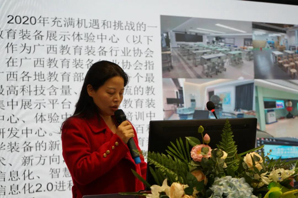 協會會長張珊對本次會議進行總結。她講到,2020年協會各項工作穩步落實,扎實推進,成績顯著,行業號召力和影響力日益增強;2021年將提升教育裝備行業高質量發展作為協會工作的重點和主線,把政治建設放在首位,密切與教育部門的合作,做好協會各項工作并按照相關要求做好換屆工作,辦好第十屆展示會、做好展示中心和示范校建設等工作。廣西教育裝備行業要繼續履行三服務的宗旨,發揮三大作用,堅持穩中求進的總基調,立足新發展階段,貫徹新發展理念,構建新發展格局。以推動高質量教育裝備發展為主題,以改革創新為根本動力,不斷推動教育裝備對教育現代化,建設教育強區的支撐與引領。