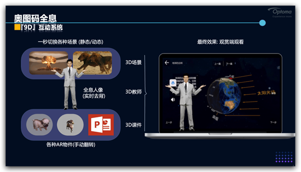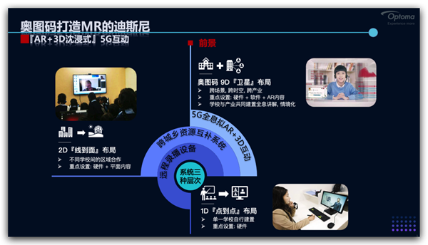 從最初的1D,到2D,遠(yuǎn)程教育不斷的發(fā)展,5G的到來,AR技術(shù)的不斷成熟,升級(jí)/優(yōu)化智慧化教育體系勢(shì)在必行,奧圖碼立志打造MR的迪斯尼,帶大家進(jìn)入9D智慧教育時(shí)代,具體細(xì)節(jié)將在本次論壇演講中進(jìn)行揭秘。