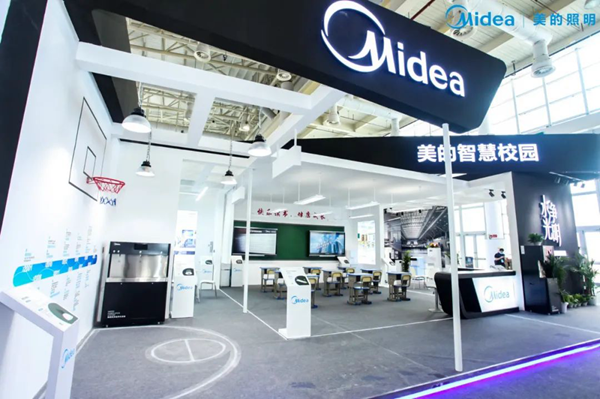 展示會上,美的照明通過模擬“教室區、辦公區、展示區、籃球區”,將微型校園搬到了現場。
