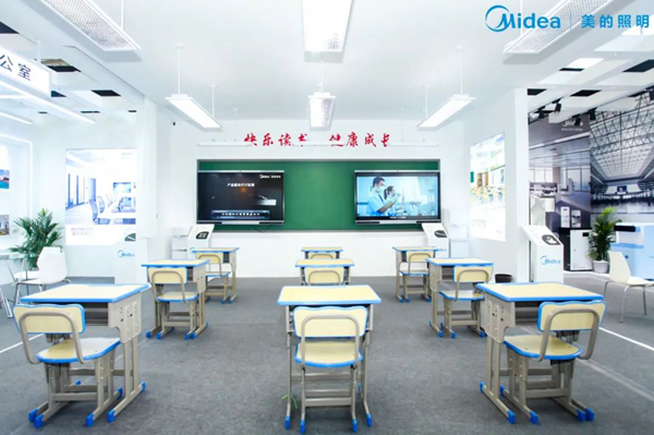 此次的教室展示區主要采用了美的照明-菱格系列LED教室燈和LED黑板燈。