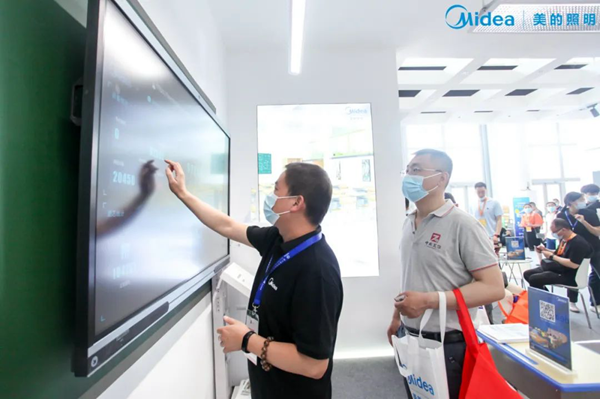 會上,嘉賓朋友通過智慧屏幕,了解到了美的教育照明的數據可視化的應用管理情況,該照明系統可精準監控不同區域的不同時刻下的照明層度。