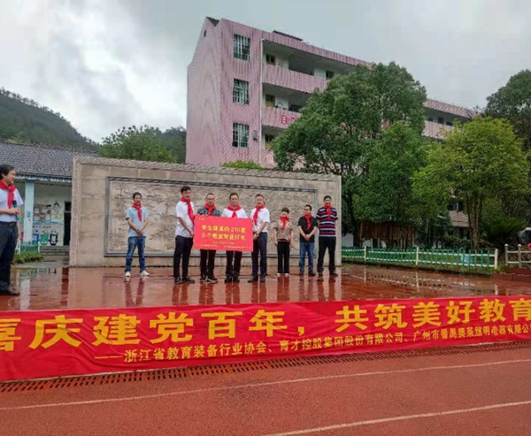 2021年6月22日,為慶祝中國共產黨百年華誕,浙江省教育裝備行業協會攜會員企業育才控股集團股份有限公司、廣州市番禺奧萊照明電器有限公司聯合開展“喜慶建黨百年,共筑美好教育”公益捐贈活動,向麗水市蓮都區麗新民族小學捐贈210套優質學生課桌椅和9個教室智能照明燈光,并參觀南鄉革命紀念館。
