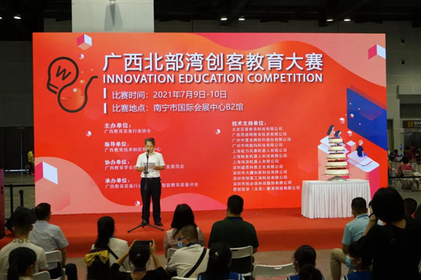 廣西北部灣創客教育大賽是廣西教育裝備展示會的重要活動之一。廣西教育技術和信息化中心肖榮亮主任出席開幕式。他在致辭中寄語小創客們,要培養創造力和想象力,要刻苦學習,要象海綿吸水一樣學習知識。希望參賽的師生,確立積極健康的競賽心態,在賽中學習,在賽中發現,努力讓自己成為德智體美勞全面發展的社會主義接班人。
