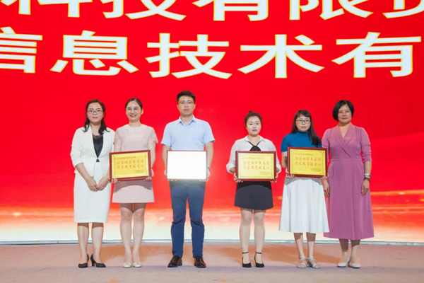 中國教育裝備行業協會城市教育裝備工作委員會秘書長許原芝(中)、遼寧省教育裝備行業協會秘書長 翟晗(右一)