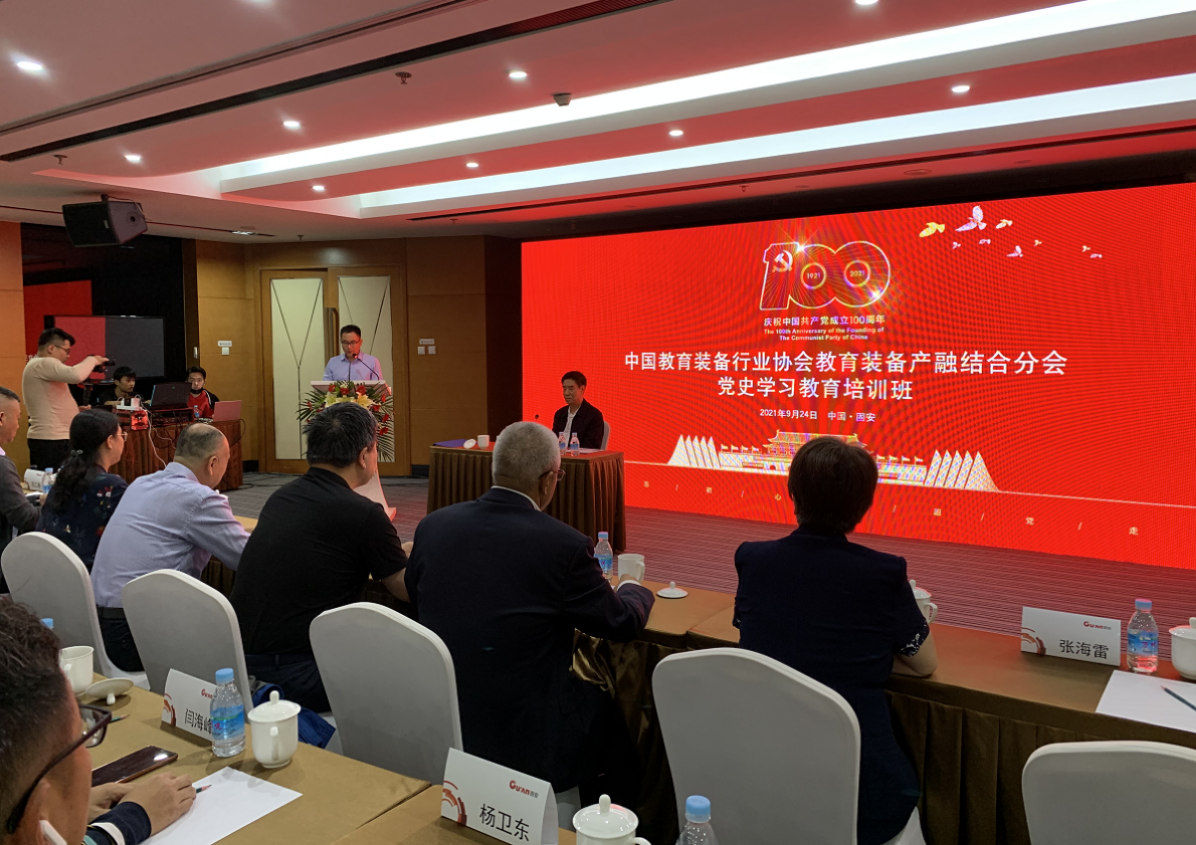 9月24日下午,在固安創業大廈,“光榮在黨50年”紀念章獲得者、協會黨支部書記王富以“學黨史 知黨情 跟黨走——重溫紅色記憶 讓歷史照亮未來”為題講專題黨課,會長以自己50多年黨齡的親身經歷,用“信”“誠”“公”“廉”“勤”五個字勉勵全體黨員要弘揚共產黨的擔當精神,一步一個腳印,踏踏實實做好本職工作,為教育裝備行業高質量發展作出更大的貢獻。