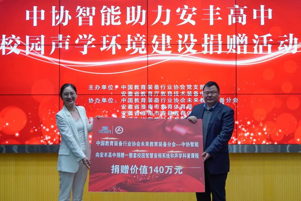 為貫徹落實黨中央的決策部署,踐行“我為行業(yè)辦實事”的時代新風和價值導向,2021年10月13日,由中國教育裝備行業(yè)協(xié)會黨支部、安徽省教育技術(shù)裝備中心主辦,中國教育裝備行業(yè)協(xié)會未來教育裝備分會、淮南市教育體育局、壽縣教育體育局協(xié)辦,江蘇中協(xié)智能科技有限公司(以下簡稱中協(xié)智能)支持的“我為行業(yè)辦實事 優(yōu)質(zhì)資源進校園”捐贈活動在安徽省淮南市壽縣安豐高中舉行。