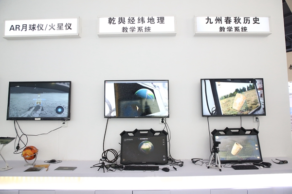 史地教室是羿飛教育的王牌項目,一直以來都備受行業(yè)關(guān)注。此次現(xiàn)場展出數(shù)字歷史沿革系統(tǒng)、互動演示實驗、AR地理沙盤、數(shù)字立體地形、數(shù)字模型、交互式3D多媒體教學系統(tǒng)等。除此之外還有乾輿經(jīng)緯地理教學系統(tǒng)、九州春秋歷史教學系統(tǒng)、以及首次亮相的AR月球儀、AR火星儀、AR夢想地理堂、黍律千秋歷史秤等。