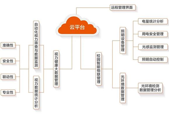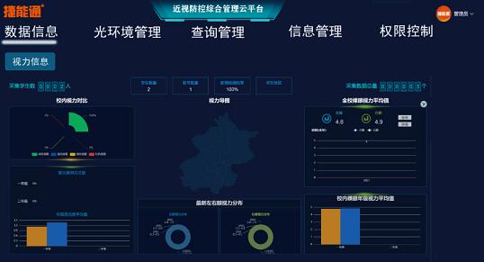捷能通與科技公司開展深度合作,搭建近視防控綜合管理云平臺,該平臺集視力篩查數據管理、光環境數據管理、節能管理、設備自動化于一體。通過智慧物聯新技術、可遠程控制開關、自動采集測量、實時監控數據,實現兒童青少年近視防控的智能化管理。
