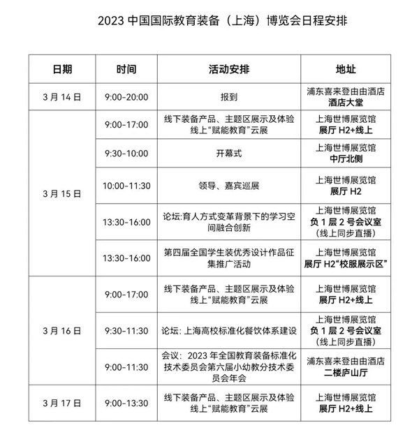 2023年3月15-17日,2023中國國際教育裝備(上海)博覽會即將在上海世博展覽館舉辦。