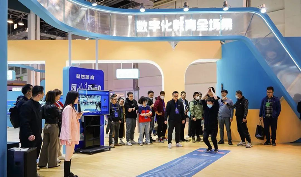 勛然體育此次創新設計展位區域,分區展示了智能跳繩、智慧屏、智能體測、智慧體育校園建設方案等在內的系列產品和方案,吸引了無數參展觀眾的目光。