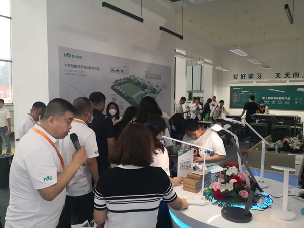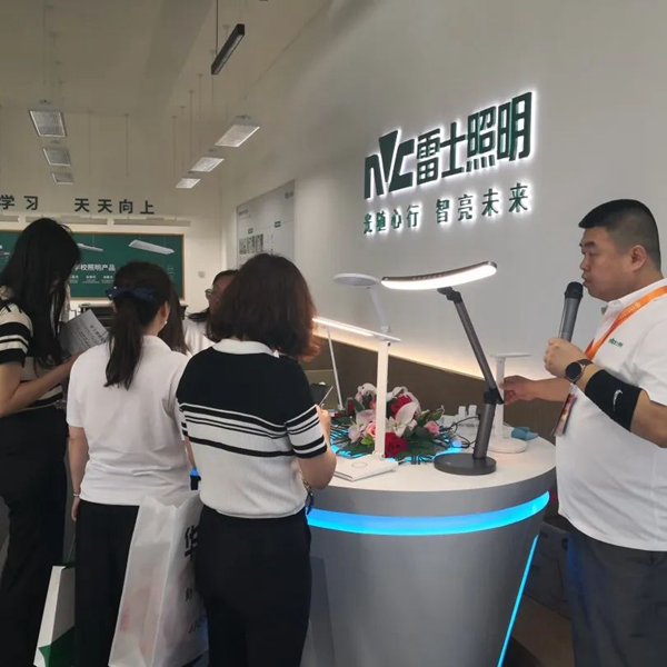 工作人員熱情接待參展者,詳細(xì)地向參展客戶講解智慧照明校園創(chuàng)新應(yīng)用解決方案,帶領(lǐng)客戶了解雷士照明的產(chǎn)品與服務(wù)。