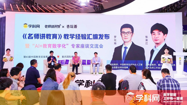 在展會上,學科網隆重發布《名師講教育》教學經驗匯編,并舉辦“AI+教育數字化”專家座談交流會,邀請正高級教師、中國教育技術協會人工智能專業委員會常務理事羅化瑜,正高級教師、重慶市中小學信息技術名師工作室主持人張渝江現場共話未來教育。