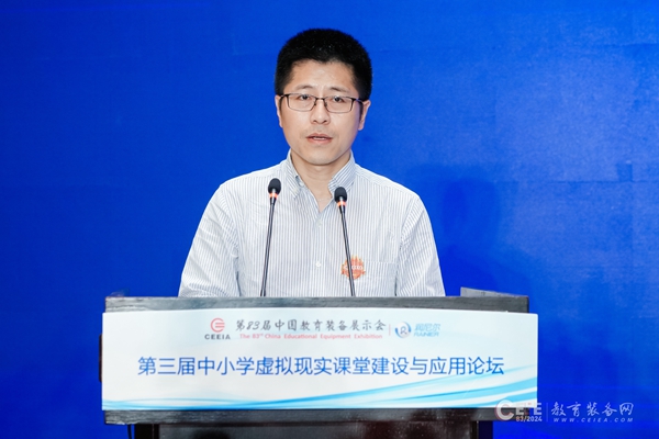 丁新解讀教育信息化裝備分會虛擬現實工作組相關工作并發布《中小學教師虛擬現實教學應用能力培訓方案(2024)》。該培訓方案包含通識性課程、學科教師培訓課程以及中小學生操作課程,能夠幫助廣大教師掌握虛擬現實在教育教學中的應用策略和實踐方法。