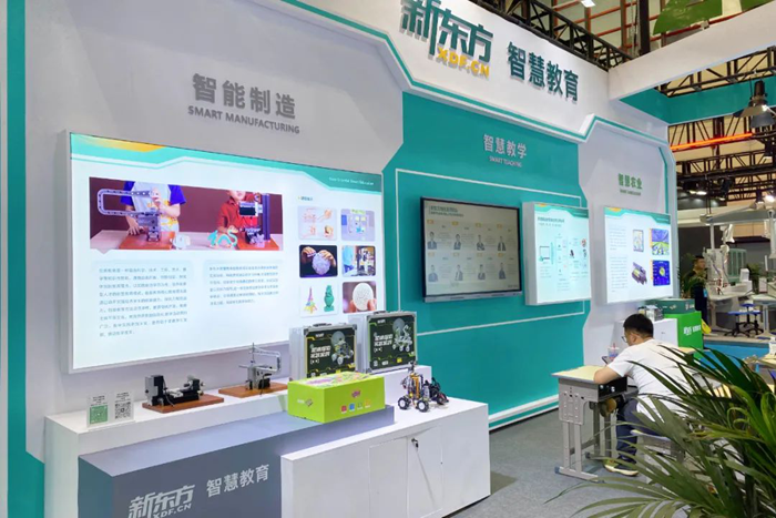 在科技教育板塊,新東方智慧教育展出的智能科技、航天科技兩大細分領域系列教育產品及體系化的課程設置和人才培養模式,是此次展會的一大亮點。