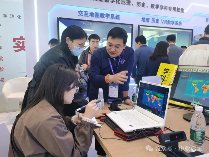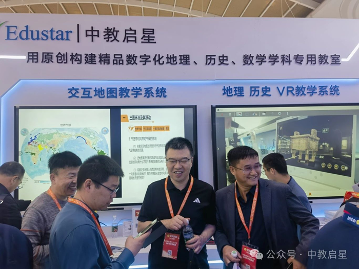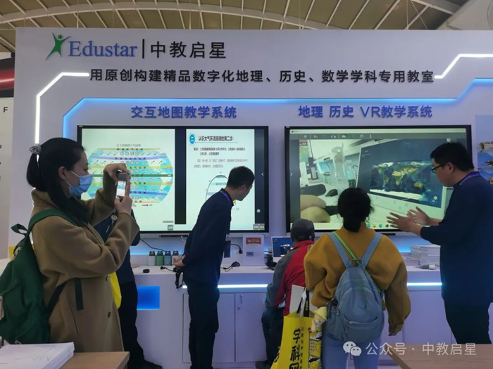 在這場教育創新的浪潮中,北京中教啟星科技有限公司攜原創研發的地理系列、歷史系列、勞動教育系列、VR教學系列產品精彩亮相本次教裝展,以其卓越的教育科技產品和前瞻的教育理念,吸引眾多觀展嘉賓、各地教師團隊、電教教裝領導、東南亞國際友人等蒞臨體驗,并給與充分肯定。