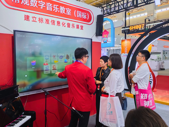 金三惠展位熱鬧非凡,觀眾絡(luò)繹不絕。金三惠通過(guò)產(chǎn)品展示以及專(zhuān)業(yè)的講解,讓現(xiàn)場(chǎng)觀眾感受到在數(shù)字化、智能化的賦能下,音樂(lè)教育的飛速發(fā)展,金三惠以提供優(yōu)質(zhì)資源和營(yíng)造良好創(chuàng)新氛圍為基準(zhǔn),建設(shè)未來(lái)音樂(lè)教學(xué)新體驗(yàn),讓學(xué)生和老師都能更輕松的上好、上懂音樂(lè)課。