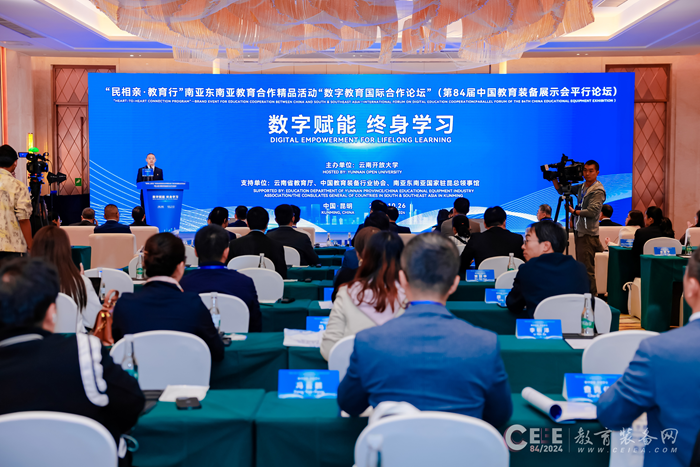 在云南省教育廳、中國教育裝備行業協會、南亞東南亞國家駐昆總領事館的支持下,由云南開放大學主辦的“‘民相親·教育行’南亞東南亞教育合作精品活動——數字教育國際合作論壇”于10月26日在昆明滇池國際會議中心舉辦。本次論壇作為“第84屆中國教育裝備展示會”的平行論壇同期舉辦。