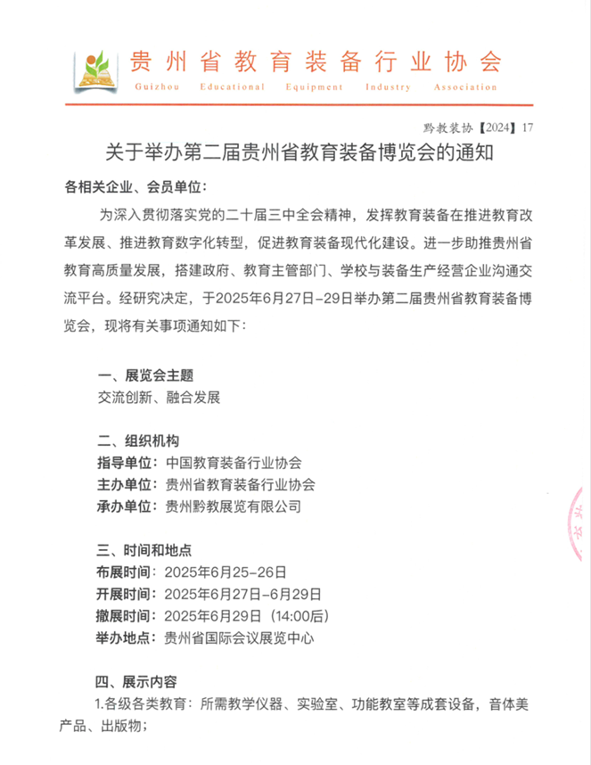 關(guān)于舉辦第二屆貴州省教育裝備博覽會(huì)的通知