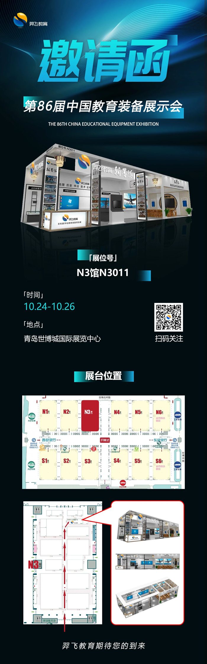 2025第86屆中國教育裝備展示會, 羿飛教育在N3館 N3011號展位,恭候您的蒞臨!