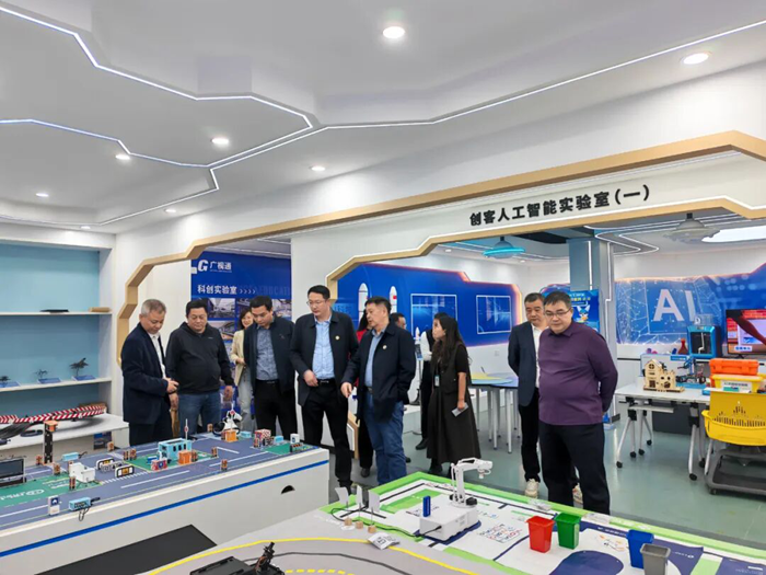 座談會結束后,在陳登貴董事長的陪同下,協會領導一行走進了廣視通教育裝備數字化展廳,近距離觀摩廣視通的核心產品與解決方案,對公司深耕教育裝備領域的成果表示肯定,并對產品的創新性、實用性以及在推動教育數字化發展中的積極作用給予高度評價。