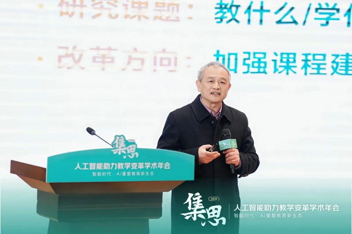 華東師范大學吳剛平教授則立足于《核心素養時代的課程與教學改革》,系統闡述了在智能技術背景下,課程重構與教學方式迭代的內在邏輯。他介紹:“課堂教學改革需聚焦課程建設與課堂轉型,通過強化教師課程意識,推動學科實踐,將知識傳遞轉向探索發現,以解決學生‘學會’與‘會學’之間的矛盾�!�