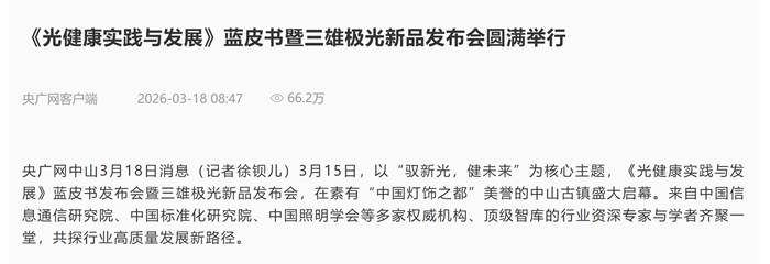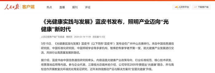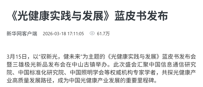 從產(chǎn)品到系統(tǒng),從企業(yè)到國家,從被動到主動,從商業(yè)到民生——這份藍(lán)皮書承載的,不僅是三雄極光二十一年的實踐沉淀,更是中國照明產(chǎn)業(yè)從“制造”邁向“智造”、從“產(chǎn)品”升維“健康”的集體躍遷。