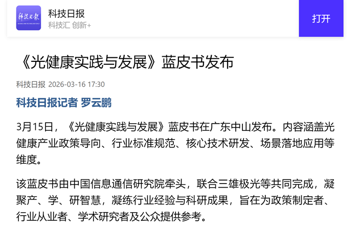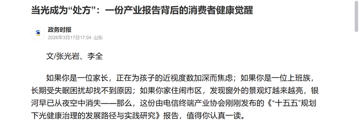政務(wù)時報在報道中以“當(dāng)光成為‘處方’”為題,精準(zhǔn)捕捉了這一變化。文章指出,藍(lán)皮書的發(fā)布背后,是消費者健康意識的深層覺醒——人們開始追問:我每天接觸的光,對我的眼睛、睡眠、情緒究竟產(chǎn)生了什么影響?