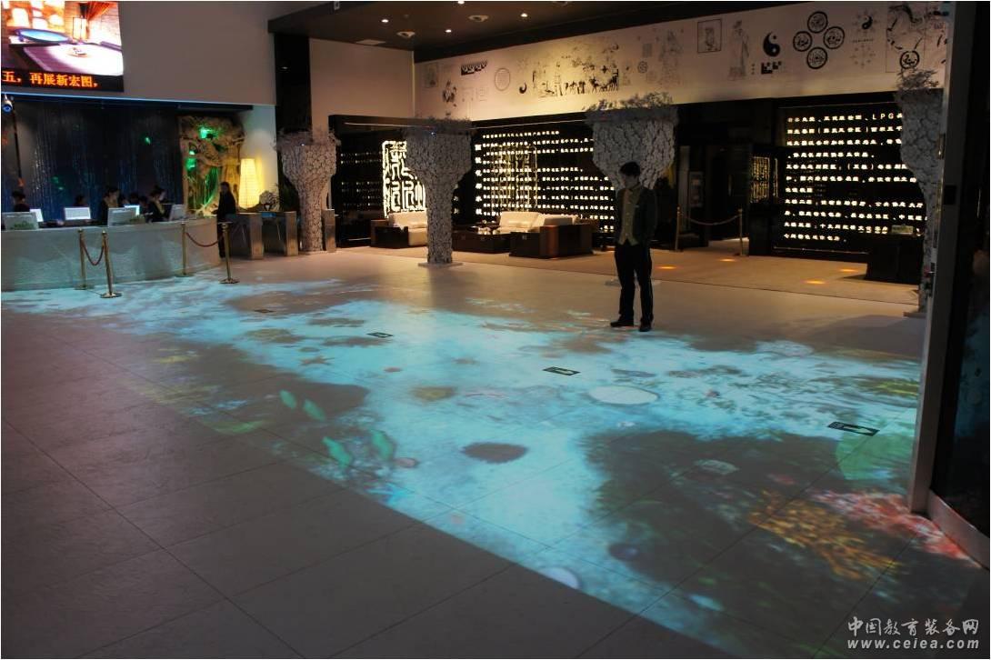 產品詳細介紹 地面互動投影系統采用先進的計算機視覺技術和投影顯示技術來營造一種奇幻動感的交互體驗,系統可在你腳下產生各種特效影像。當你踏入正上方投影投射在地面上的影像時,你可以直接使用雙腳或雙手與普通投影幕上的虛擬場景進行交互,各種互動效果就會隨著你的腳步產生相應的變幻,讓你進入一種虛實融合、亦真亦幻的奇妙世界。 地面互動投影系統是參與者和投射在地面上的影像的真實互動,該系統由感應器、應用服務器和地面顯示三部分組成。將廣告的受眾與廣告內容結合在一起,做到多名觀眾融入到廣告場景中,就像大家同時參與游戲一樣,多名觀眾的形體動作通過非接觸式的感應設備,如同電腦的鼠標,控制著地面投影或墻面投影的廣告內容,產生互動。廣告的內容隨著參與者的路過或動作產生不同的變化。例如:投影機在地面上灑下一片水波,參觀者走入其中,就能看見"水面"在腳下泛起點點漣漪,仿若漫步湖面;魚兒隨著活動者的腳步在虛擬水面上泛起的波紋或四處游散或游聚一起;花朵隨著活動者的腳步在虛擬的草地上綻放;海龜被活動者的腳步踢到四處游開,同類的可是模擬足球等。 交互效果豐富:可以根據客戶的創意需要定制展示的內容和交互的效果。 多人同時交互:可以同時支持20人或更多游客同時參與展示內容的交互。 可擴展能力強: 投影區域面積和投影形狀可以根據展示效果及創意的需要而任意改變。 易于安裝部署:安裝、拆裝和運輸方便靈活,既適用于長期展覽也方便用于短期展會。 專業培訓維護:向客戶提供專業的使用培訓以及高質量的維護服務。 不斷更新升級:系統軟件不斷升級,系統運行更高效,交互效果更加豐富。