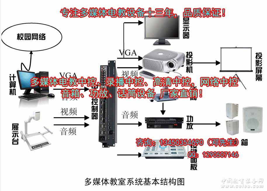 產品詳細介紹多媒體電教室方案,多媒體階梯教室設計方案 一、系統概述(方案設計:鄧生 13450354690) 當今,重視現代教育技術對教育產生的影響,大力推進教育現代化是世界教育發展的主流。我國在運用現代教育技術手段整合教學的過程中,已取得了相當成效。采用先進的教學手段,提供全新的教學環境,來設計教學活動,已經成為市場的趨勢所在。 隨著現代化教學系統在各大院校的不斷推進,傳統的方式已經不適應現代化的需要,集多功能教室系統、多媒體教學系統、演播系統於一體的新型現代化教育體系在教育行業得到了日益廣泛的運用。作為一種新型的教育形式和現代化教學手段,多媒體技術給教育行業帶來了新的機遇。