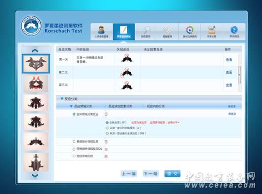 三、北辰羅夏墨跡測驗軟件的優點: 1、軟件根據測驗的四個階段:自由反應階段、提問階段、類比階段、極限測驗階段分別在每張圖版上提供使用者進行自定義的內容記錄,便于使用者在后續的診斷中更準確的了解每一階段被試者當時所做出的真實反應。