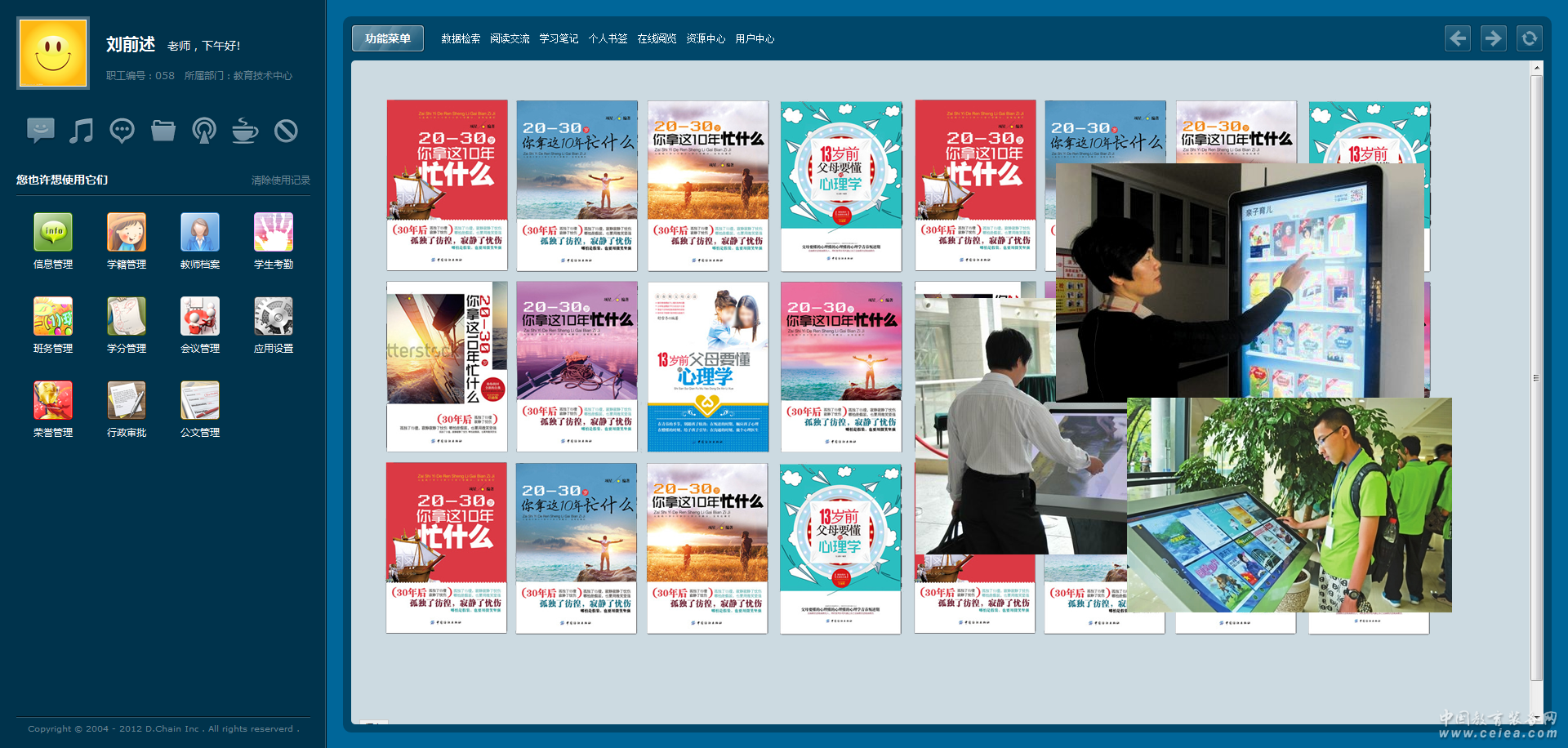 用戶中心 構建全校師生電子借閱檔案,記錄用戶借閱記錄等基本信息。 資源中心 實現對書籍分類、目錄、內容的全面管理。 在線閱覽 教師與學生實現圖書的在線閱覽與查看。 個人書簽 方便教師與學生記錄圖書查看進度,可實現對圖書查看的個人標識。 學習筆記 教師與學生通過此功能可實時記錄與錄入學習筆記內容,可按筆記或書籍檢索查看。 閱讀交流 可實現對閱覽同一書籍的教師或學生發起實時交流與站內交流。 數據檢索 自定義條件進行各類圖書數據搜索。 |