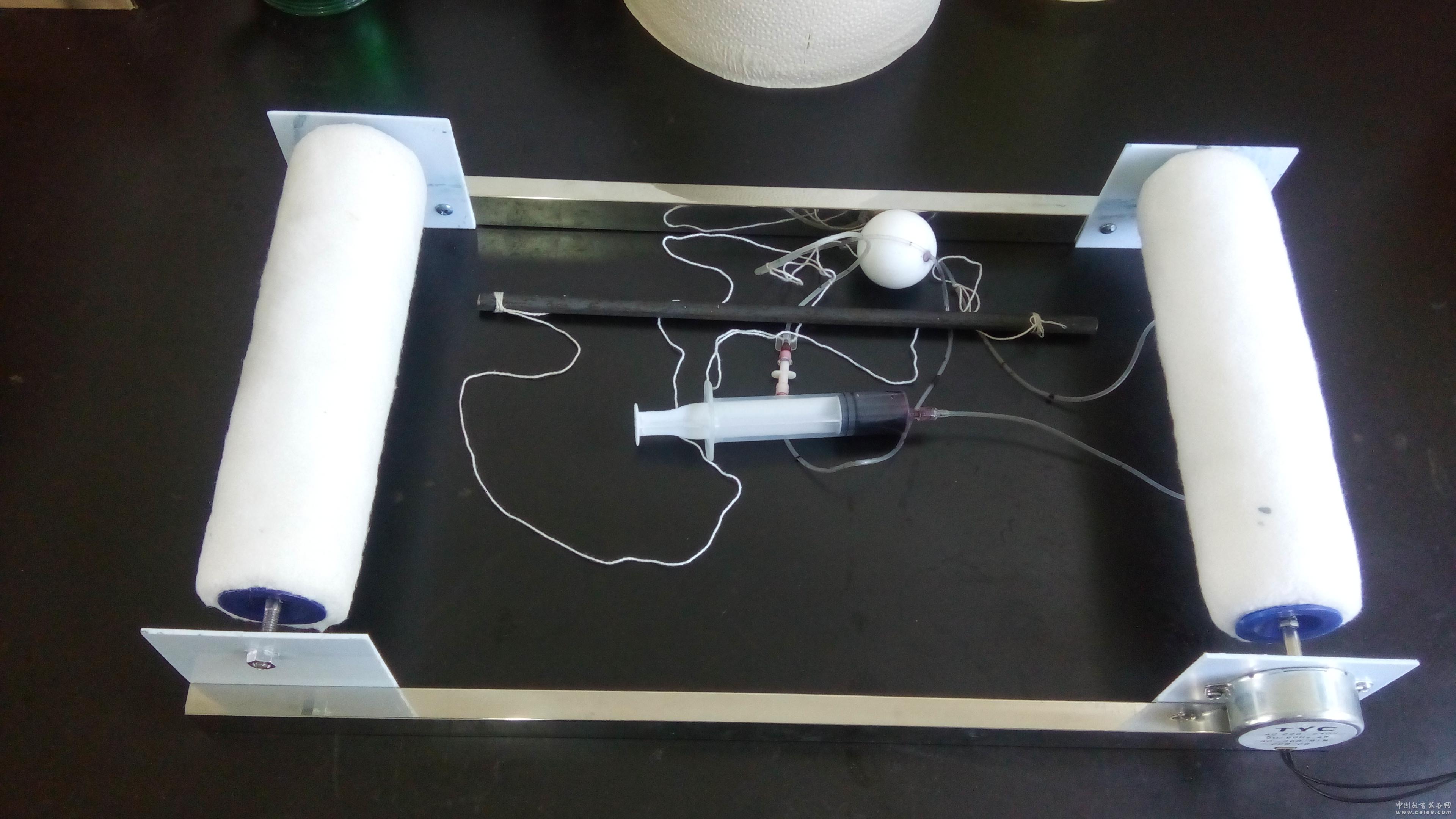 橡膠細(xì)管一端連接針頭,另一端與注射器相連,針頭插入擺球中心小孔內(nèi),注射器內(nèi)注入墨水,推動(dòng)注射器活塞,針頭噴出的墨水在紙帶上留下的墨跡,記錄下擺球的位置。當(dāng)小球擺動(dòng)時(shí),墨跡記錄的就是擺球的位移,也就是位移坐標(biāo)。