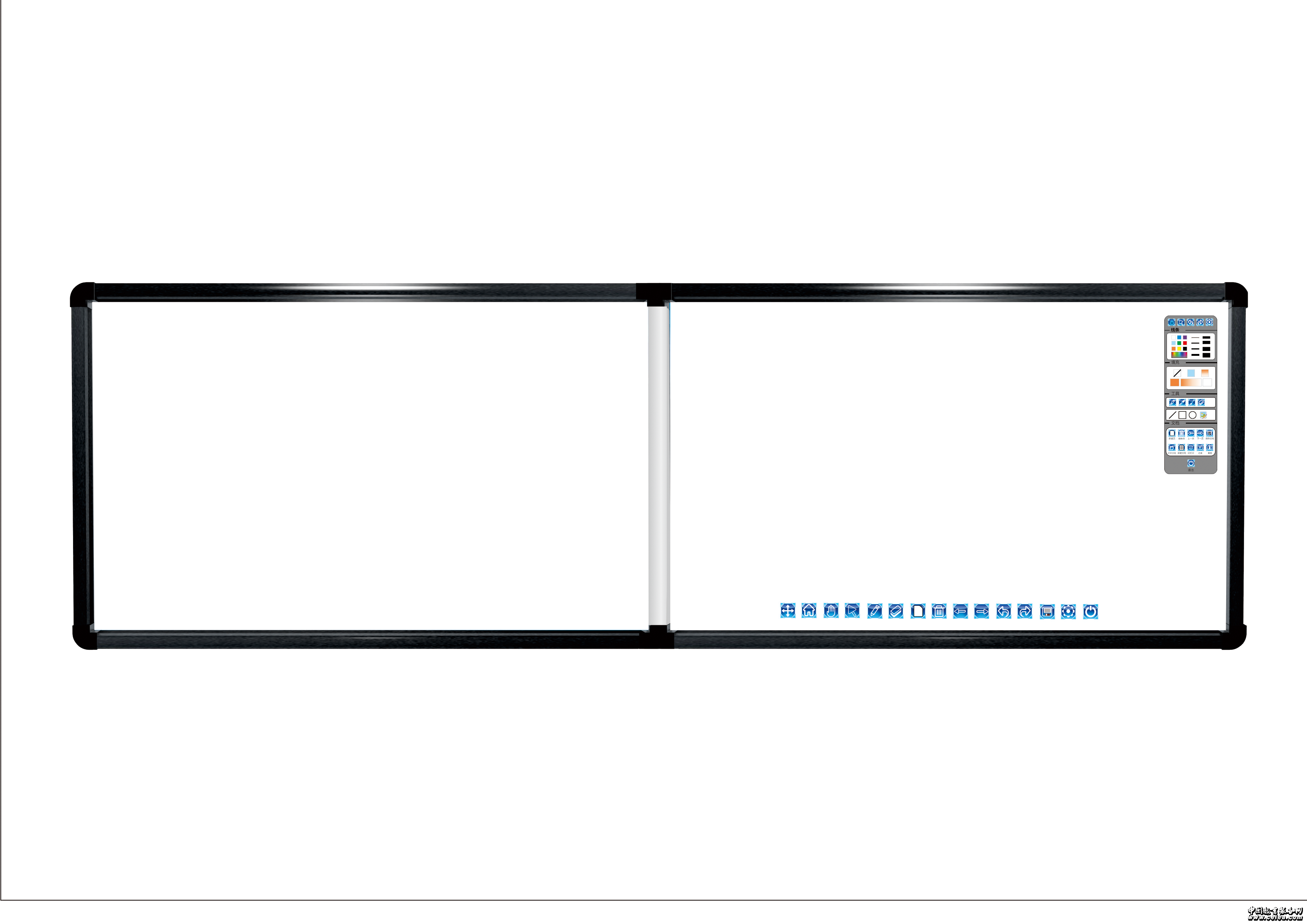 采用兩塊白板拼接方式,一部分作為普通教學書寫白板,一部分作為互動書寫投影白板,兩部分的材質是完全相同的互動部分可根據客戶需求定制不同尺寸。