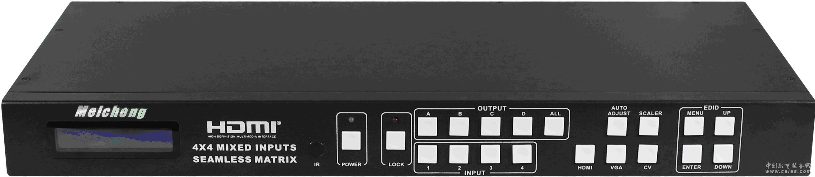 產品詳細介紹MX-1004VW是一款高性能電視墻拼接處理器—具畫面分割、無縫切換輸出及混合輸入4x4矩陣切換器,具4組混合訊號輸入[支持數字和模擬影像訊號],同時4組輸出具無縫切換功能,無縫切換輸出模式分有:快速切換、淡入淡出、拉幕等16種特效。 該混合矩陣切換器采用先進數字處理技術,具影像Scaler(影像處理與轉換)后傳送到顯示器或是電視機的功能,實現并達到了多種格式訊號統一輸出、無縫切換的完美視覺效果。同時紅外線遙控矩陣功能、模擬影像訊號輸入兼具音訊嵌入功能。控制方式多樣靈活,可透過前面板按鈕控制、IR控制、RS-232控制、TCP/IP控制。