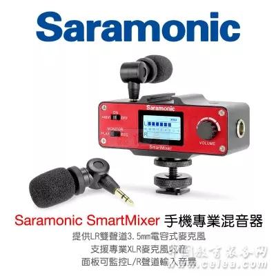Saramonic SmartMixer 1臺,3.5mm插入式電容麥克風 2個,鋁合金手把(海綿握柄) 1隻,鋁合金手機夾座(可調大小) 1個,1/4″螺絲轉熱靴底座,mini-XLR to standard-XLR cable included連結線 1條,3.5mm-3.5mm插頭連結線 2條 |